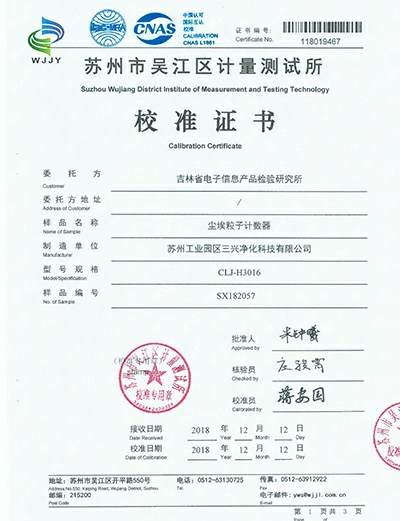 產(chǎn)品確保符合GB/T6167-2007,JF-1190-2008、ISO14644-1, GMP標(biāo)準(zhǔn), 確保用戶可通過各級(jí)質(zhì)管部門以及各省市計(jì)量檢測(cè)所計(jì)量認(rèn)證,深受多家質(zhì)量監(jiān)督所自用檢測(cè)青睞,附幾張計(jì)量所自用儀器校準(zhǔn)證書供參考。